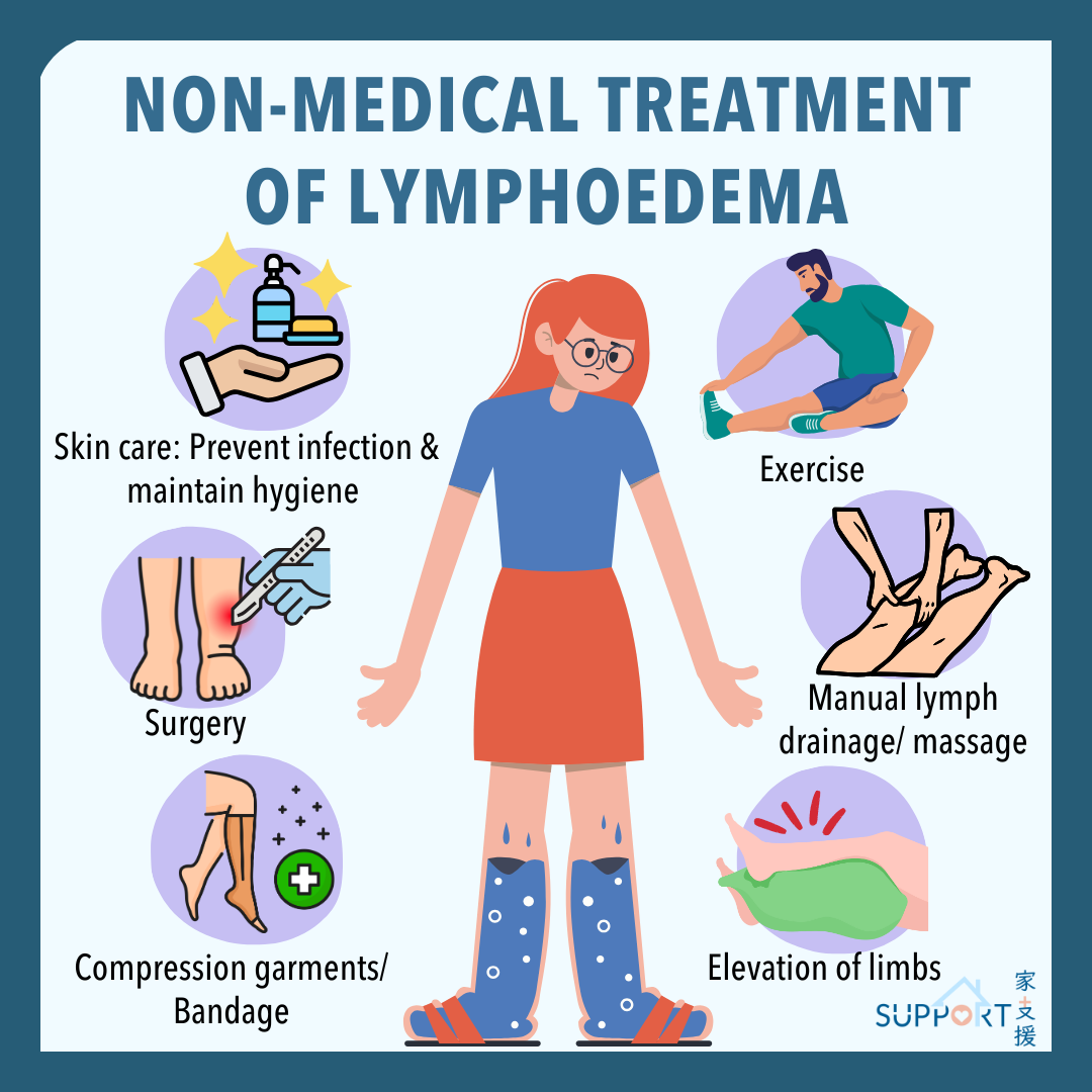 - For patients who are fit and with long survival time, surgery is an option to reduce swelling permanently.