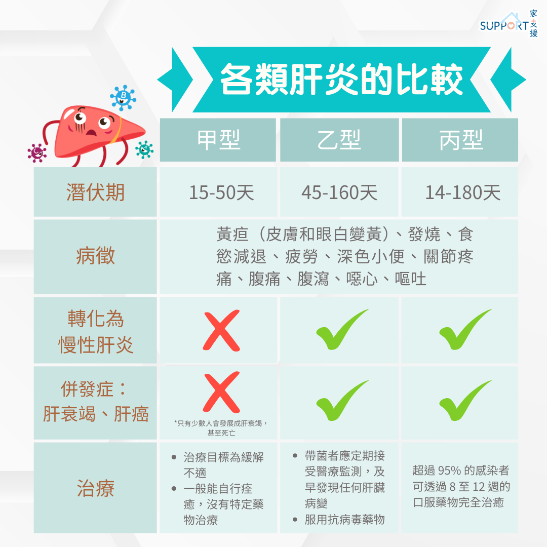 比較不同類型的肝炎